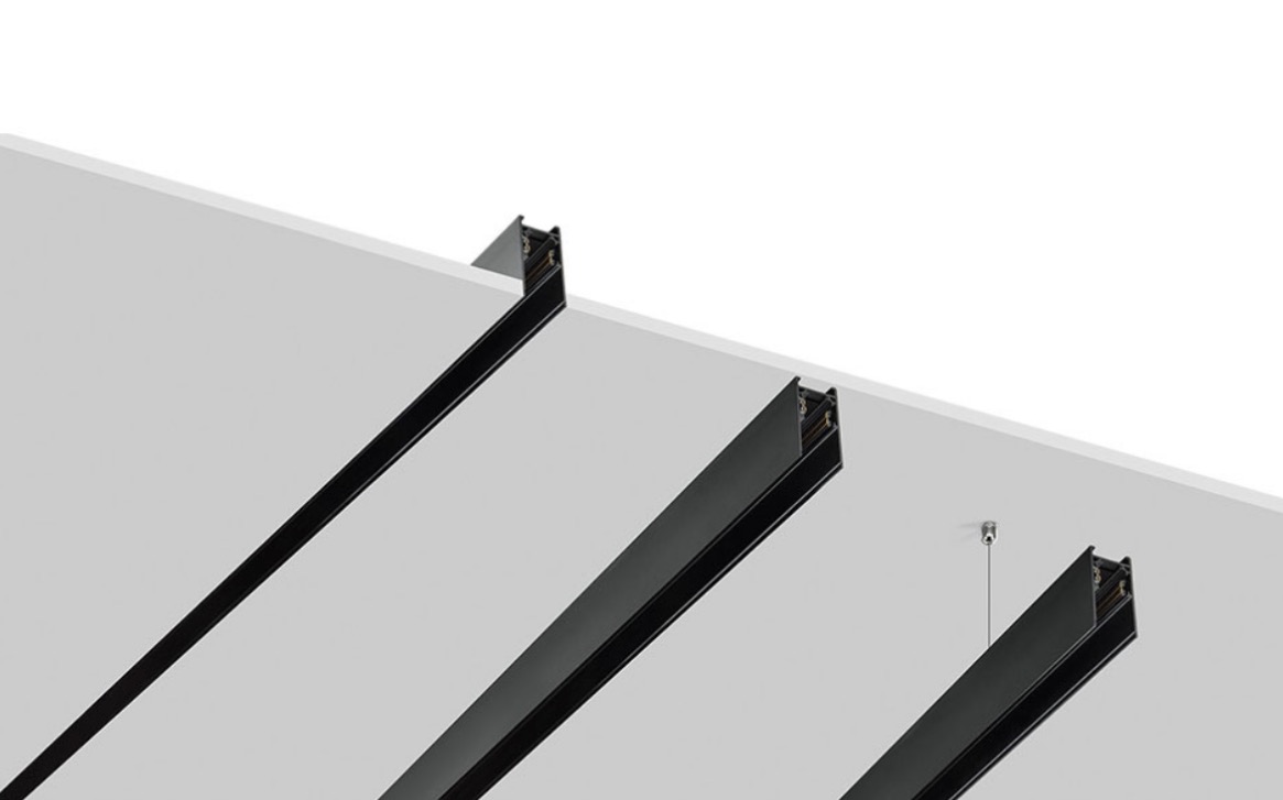 - Eén type railsysteem biedt 3 montagemogelijkheden: inbouw, opbouw en ophanging.